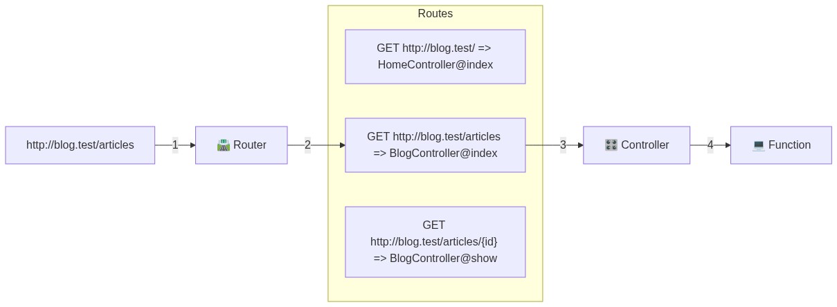 En d'autres termes, le router est responsable de faire le lien entre l'URL demandée par l'utilisateur et l'action correspondante définie dans le code de l'application. Il permet ainsi de séparer les préoccupations des différentes parties de l'application et de simplifier la gestion des requêtes HTTP.