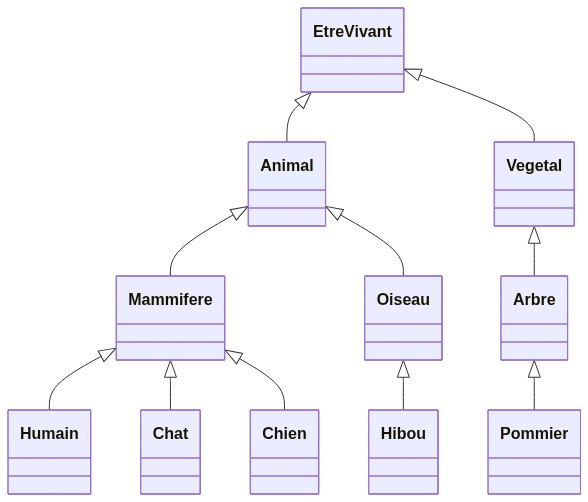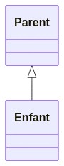 Graphiquement, l'héritage est représenté par une flèche pointant de la classe enfant vers la classe parente, avec un triangle à la pointe de la flèche.