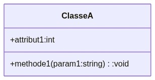 | Diagramme de classe | Représente les classes, les objets, les relations, l'héritage, l'agrégation et la composition d'un système |