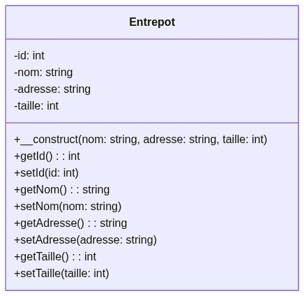 Diagramme de la classe Entrepôt