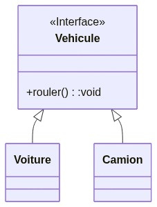 Graphiquement, les interfaces sont représentées par un rectangle avec le mot-clé "interface" en plus de leurs noms en CamelCase écrits en haut et les signatures de méthodes à l'intérieur.